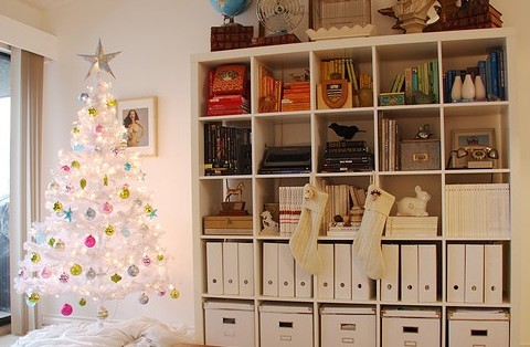 Cascading paper snowflakes bring instant magic to a small apartment, all you need are scissors, white paper, and some clear fishing line. Cut out a batch of intricate snowflakes-don’t stress about perfection, the variety in size and pattern just adds charm.
