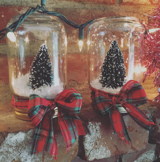 Vintage mason jar snow globes are the perfect blend of cozy nostalgia and sparkling whimsy. Grab some clear mason jars (even mismatched ones look cute), then fill the lids with a dab of hot glue to anchor mini bottle-brush trees, tiny deer, or ceramic houses.