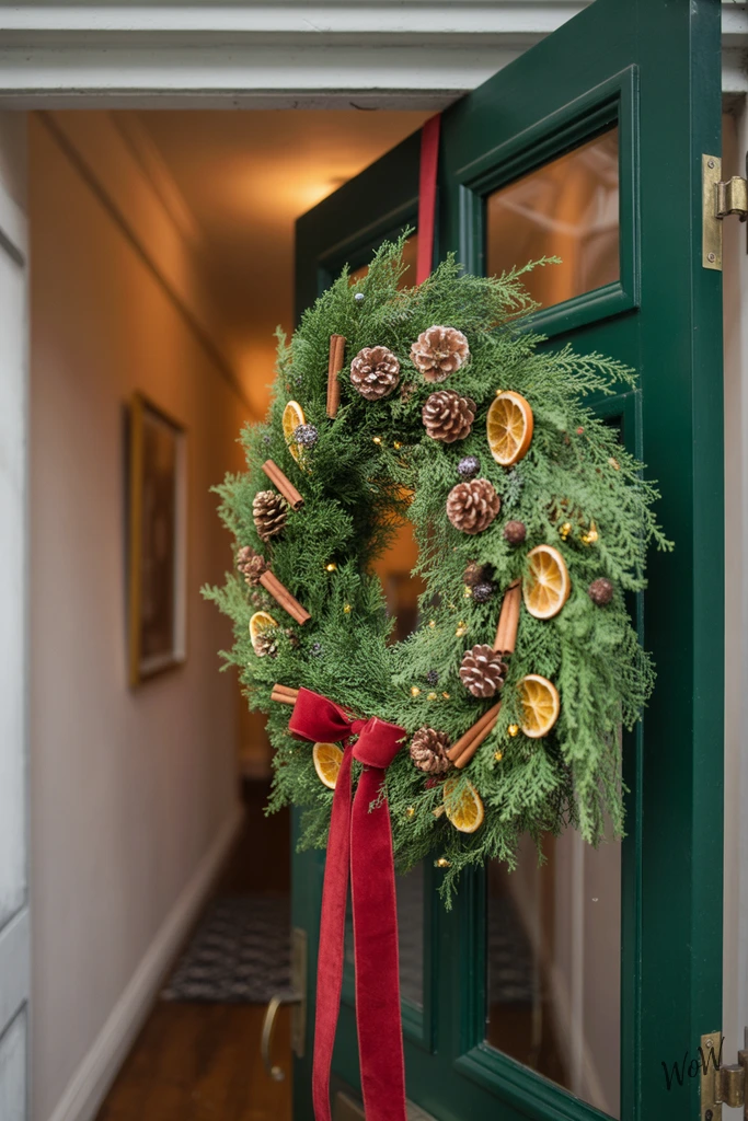 A lush evergreen wreath on your apartment door quickly sets a festive vibe, it’s like a friendly holiday handshake for every guest. Opt for a premade wreath or grab some faux greenery from the craft store-bonus points if it’s got a full, bushy feel.