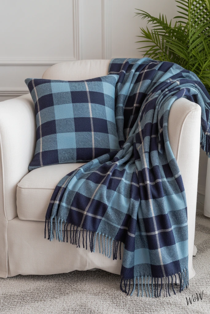 Blue plaid blankets instantly add a cozy, high-end touch to your winter setup. Look for ultra-soft chenille in navy and powder blue with a hint of silver threading-these details bring both visual interest and a little sparkle, especially when they catch the light.