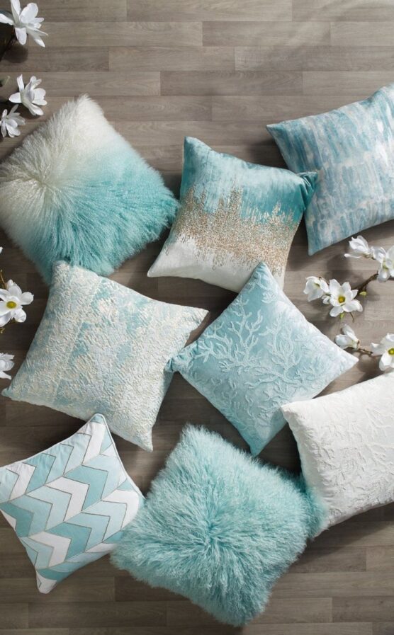 Blue faux fur throw pillows instantly add a luxe, wintry vibe, especially when you mix shades from powder blue to navy. Layer them on a white sofa or chair for a frosty, inviting look that’s both chic and cozy.
