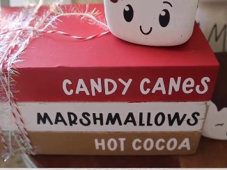 Arrange the stack so the titles peek out just enough, then casually let the Santa hat spill over the edge, like someone just dropped it there after a snowy stroll. Tuck a few mini ornaments and sprigs of faux greenery around the display for extra cheer.
