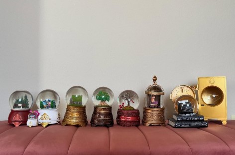 A snow globe collection makes your coffee table look like a magical winter wonderland, especially when you style it with some fresh pine branches and a sprinkle of fairy lights. Line up vintage globes-mix big and small ones for that effortless, collected-over-time vibe.