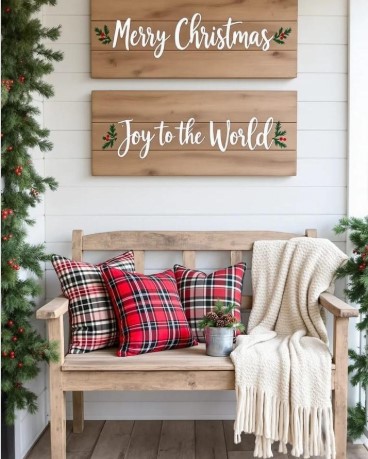 Brush on a base of distressed white or deep red paint, letting some natural wood peek through for an authentically weathered feel. Use a stencil or your own steady hand to add festive words like “Merry & Bright” or “Joy to the World” in classic fonts, it’s fun to add a sprinkle of snowflake designs in the corners for that wintry touch.