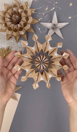 After unfolding, you’ll have beautiful, one-of-a-kind snowflakes ready to steal the show. Use clear fishing line or thin thread to hang them from the ceiling at different heights, letting them sway and catch the light.