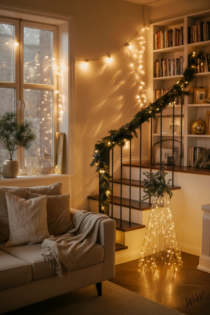 Twinkling string lights can turn your living room into a festive retreat; start by draping them across windows for a soft, welcoming glow that spills into the room. Wrap a strand or two around your banisters, letting them cascade loosely for a relaxed, whimsical effect-they look especially magical when the lights reflect off glass ornaments or metallic frames.