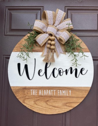 A personalized wooden plank sign makes your holiday entryway feel warm and inviting-imagine your family’s surname, hand-lettered in elegant gold calligraphy, shining against a rustic wood backdrop. To capture that cozy, festive vibe, choose a sturdy plank with visible grain; you can find unfinished signs at most craft stores.