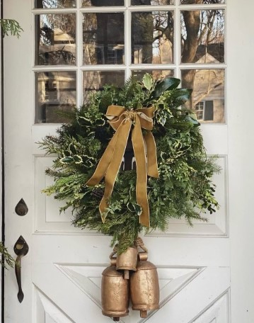 Layer in a strand of tiny, warm-white fairy lights, nestling them among the branches and bells for a gentle glow. The effect is magical, each time you open the door, the bells chime softly, welcoming guests with a hint of nostalgia and holiday cheer.