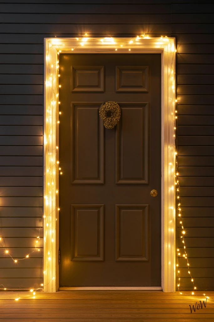 Secure the lights with discreet clear tape or tiny hooks, so nothing distracts from that continuous shine. This works on dark wood frames for a classic look, or painted doors if you want a bold contrast.