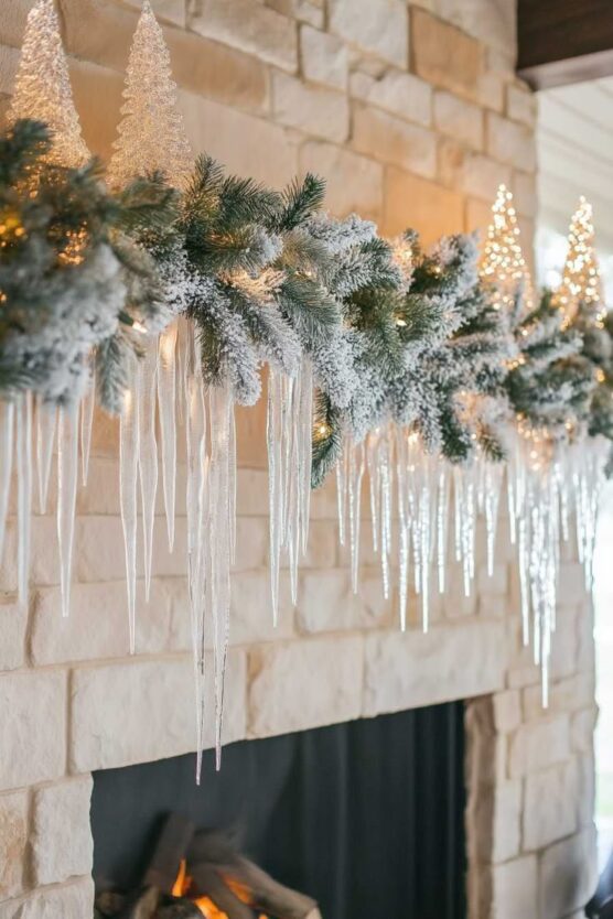 If you want extra sparkle, weave in a frosted pine garland with micro fairy lights, just wind it right above the icicles-this doubles up on the shine without feeling overdone.