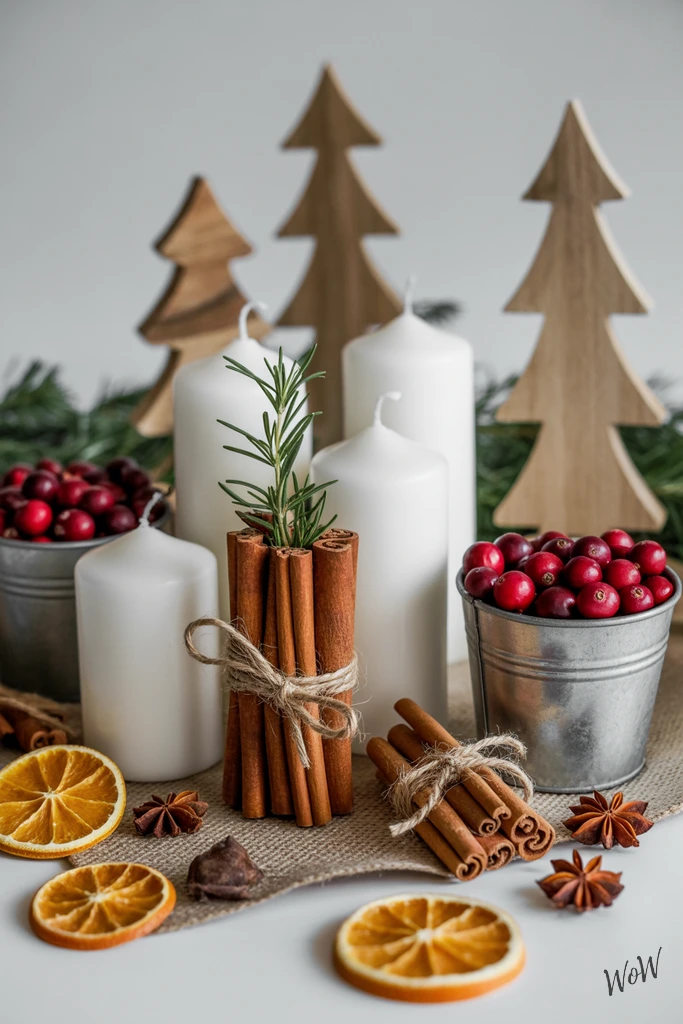 Slip a rosemary sprig under the twine for that pop of green and a hint of wintery scent. Scatter these bundles across your mantel, nestling them among candles or garland; they’ll add warmth and a cozy vibe instantly.
