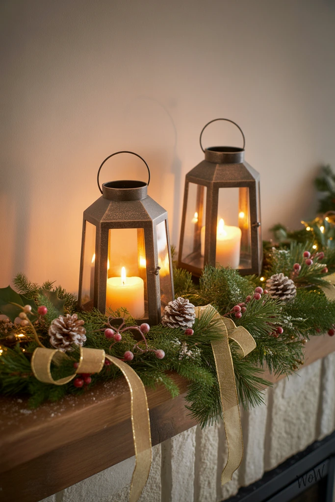 First, grab a couple of vintage bronze lanterns-flea markets or thrift stores are goldmines for these. Pop in some pillar candles (real or LED if you like playing it safe), then nestle your lanterns right on the mantel so they’re cozy but not crowded.