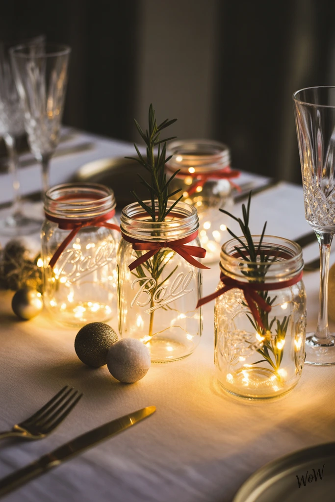 Whether arranged as a centerpiece or placed along the table, mason jar candles bring a rustic elegance and magical sparkle that transforms any Christmas setting into a cozy winter wonderland.