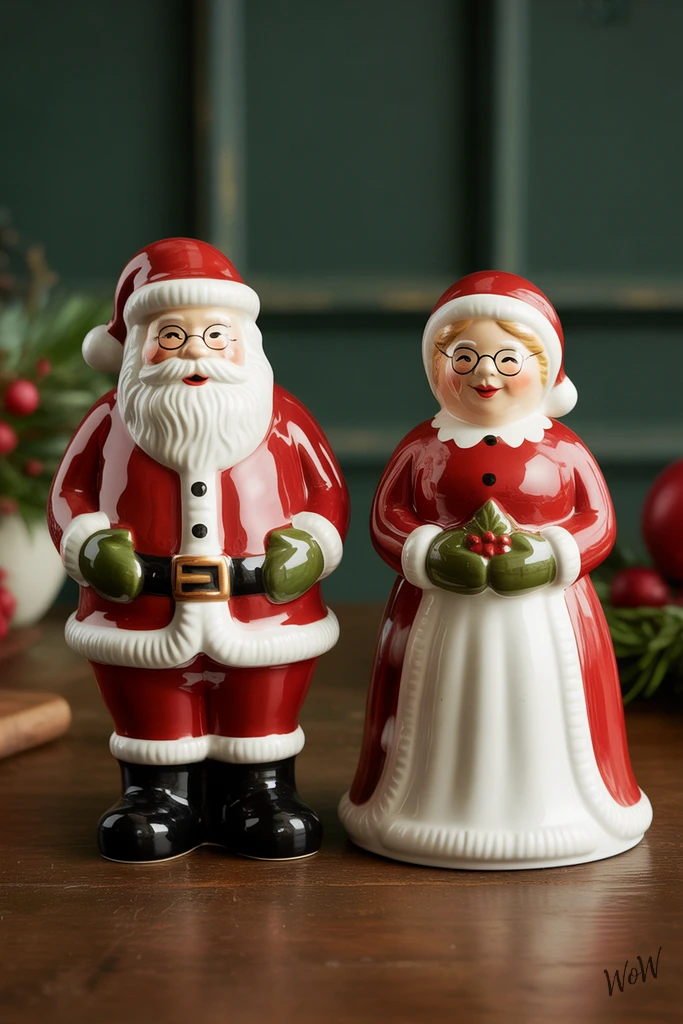 Swap out your everyday salt and pepper shakers for something that instantly sparks smiles-hand-painted Santa and Mrs Claus shakers. These tiny, four-inch tall ceramics are artful conversation starters, their rosy cheeks and twinkly spectacles add a pop of personality to your holiday table.