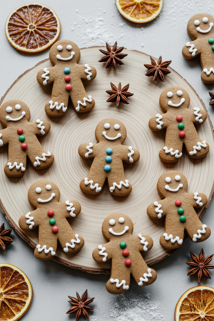 Forget boring place cards-swap them for gingerbread men cookies, each one wearing a different “outfit” made with royal icing. You can pipe on sweaters, scarves, polka-dot pants, or even tiny bowties, add candy buttons for a playful touch.