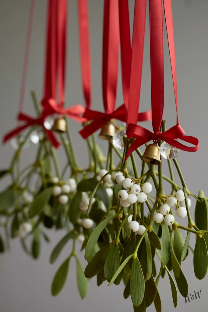 The deep green mistletoe leaves and clusters of white berries will bring a romantic, old-fashioned holiday vibe to your space, while delicate crystal beads threaded onto the ribbons add a bit of sparkle as they catch the candlelight. For a whimsical touch, attach tiny golden bells to the ribbon ends-the bells’ soft jingle creates a magical effect every time someone moves beneath the mistletoe.