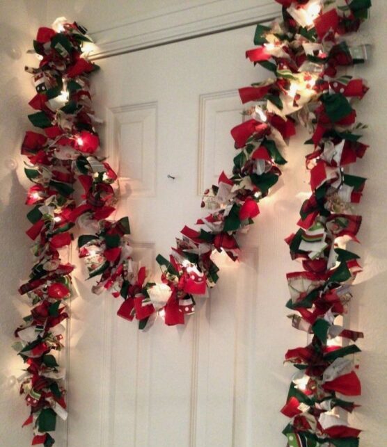 Rich emerald green and deep crimson satin and velvet ribbons bring quick holiday glam-just swag them across your wall, anchoring the ends with discreet hooks or clear tape. Layering the colors gives a lush look, gold-edged ribbons weave through for a hint of sparkle, and the mix of textures really pops against a neutral wall.