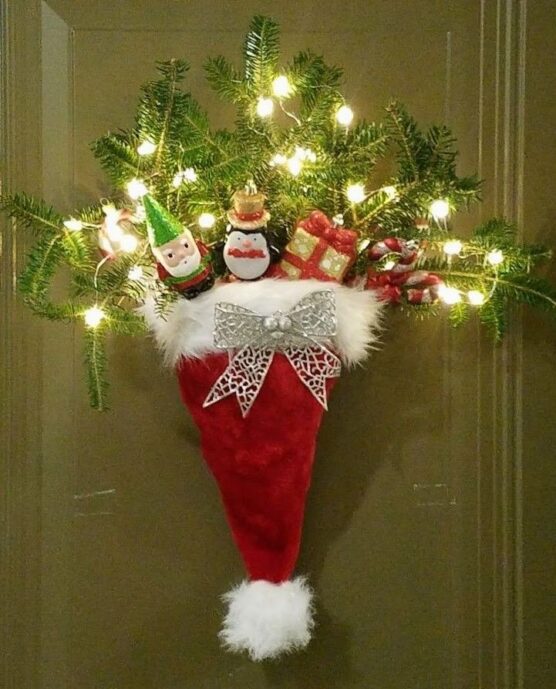 Whimsical Santa hat wall hooks add a dose of festive cheer, especially when they’re crafted from plush red velvet and trimmed in fluffy, real white fur. Mount these along a hallway, above a mantel, or near your entryway-it looks like Santa’s hats were tossed onto the wall, bringing a fun, three-dimensional twist to your space.