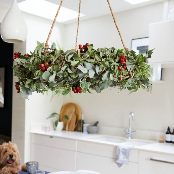 You can buy a pre-made wreath or DIY by threading cranberries and tucking in eucalyptus branches, secure everything with floral wire, and don’t stress if it’s a little wild-that’s part of the charm.