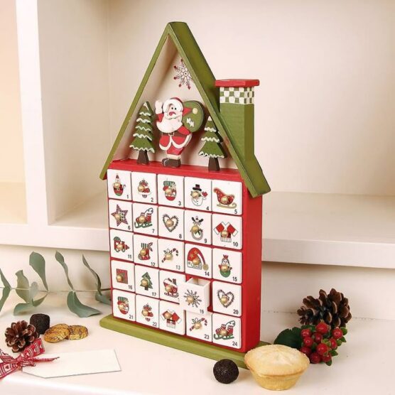A rustic wooden advent calendar becomes the star of your dining table when you make it a centerpiece, those numbered drawers in distressed wood look both festive and timeless. To pull this off, start with a sturdy, weathered advent calendar-vintage or new with a faux-aged finish works.