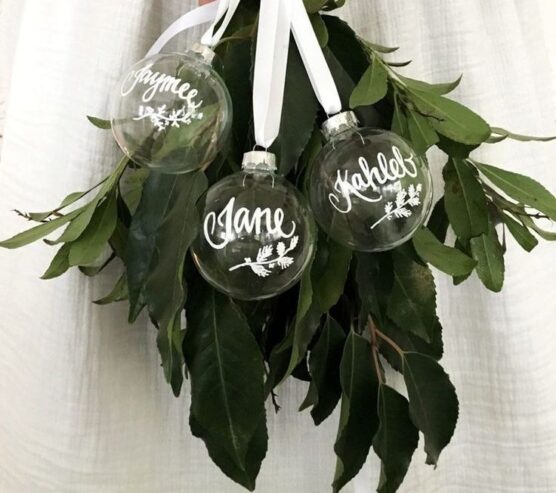 Personalized glass ornaments double as memorable place cards and take-home favors, when you hand-calligraph each guest’s name on a delicate bauble, it instantly ups the elegance. Hang them from tiny wreath-shaped holders at each setting-super simple to assemble, just nestle the wreaths atop a festive runner.