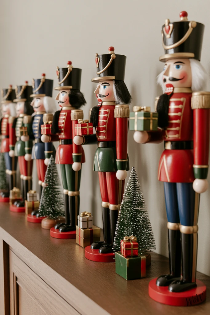 To pull this off, grab a mix of sizes and poses-some holding mini gifts, others with tiny drums or trumpets. Mix in a few small Christmas trees or wrapped boxes between the soldiers for extra whimsy.