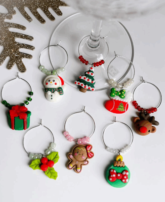 Tiny Christmas ornaments, silver bells, and glittering snowflakes dangling from delicate rings dress up any wine glass, they catch the candlelight for a little extra sparkle at the table. These festive charms come in endless designs-think holly leaves, candy canes, or even reindeer silhouettes-so it’s easy for guests to keep track of their glasses and feel special at their seat.