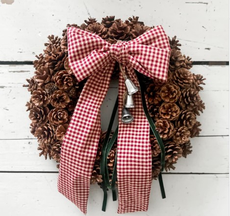 Big, chunky pinecones make a statement when arranged into a full wreath. To pull off this look, start with a sturdy grapevine or wire wreath form, then hot glue pinecones all around.