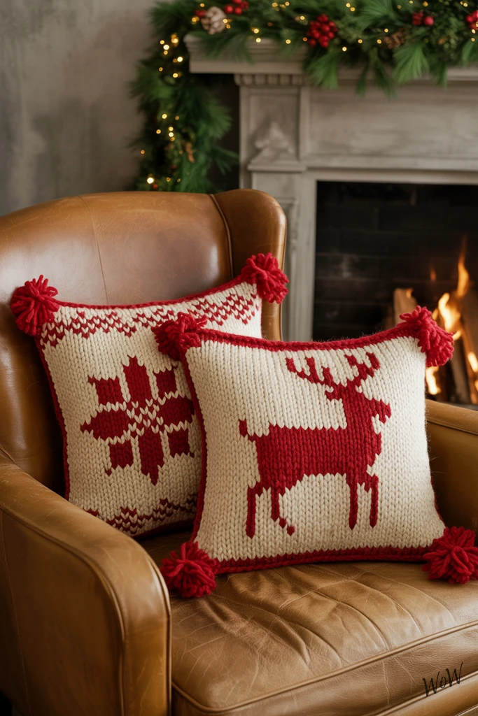 Chunky hand-knit pillow covers warm up any space, especially when you pick classic Christmas colors like cream and red. Look for thick, cozy wool and patterns with snowflakes or reindeer-those motifs practically shout “holiday cheer.” The nubby texture and loose yarn ends add a homemade, lived-in feel, you don’t need to be a pro knitter to pull it off; even a beginner can create simple envelope-style covers using big needles and super bulky yarn.