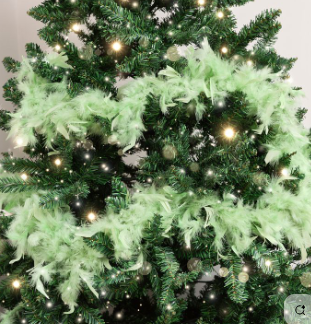 Drape fluffy green feather boas around your Christmas tree for instant Grinch texture. The soft feathers create a fuzzy, tactile element that mimics his fur while adding movement and dimension. Wind them through branches alongside your lights and ornaments, letting them cascade naturally.