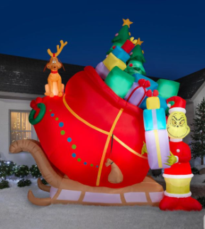 24. Grinch Sleigh with Overflowing Presents Yard Decoration