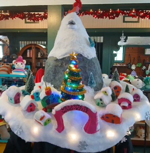 Some are glittered, others have tiny ornaments, but all share that delightfully crooked charm. They’re perfect for spreading the Whoville aesthetic throughout your rooms without taking up much space.