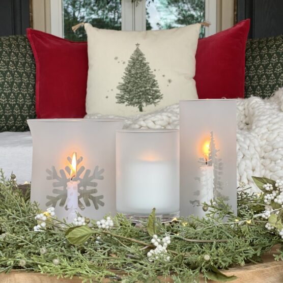 13. Frosted Glass Hurricanes with Premium Scented Candles