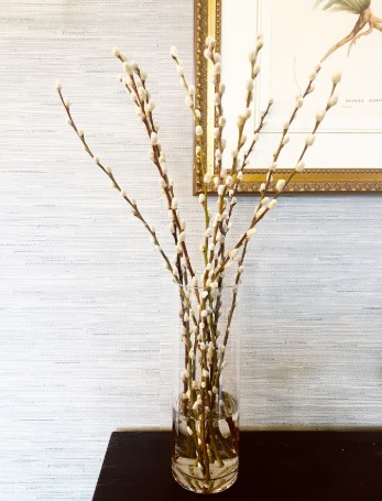 This simple yet elegant Christmas decor idea celebrates natural beauty with a calm, understated touch. Delicate pussy willow branches stand tall in a clear glass vase, their soft buds adding texture and quiet charm.
