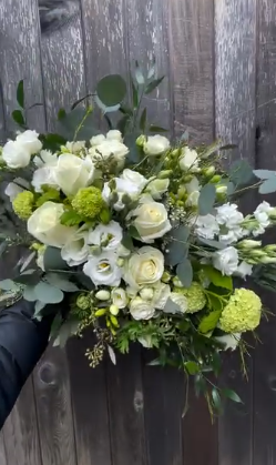 Placed on a marble surface, the look feels modern, luxurious, and perfectly composed. The white petals echo the purity of winter, making this arrangement ideal for a minimalist or contemporary holiday setting. It pairs beautifully with candles, crystal accents, or soft lighting, creating a space that feels serene, timeless, and full of quiet holiday grace without overwhelming the room.