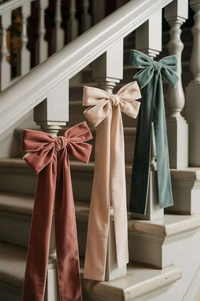 Layer multiple ribbons in complementary colors for added richness, or stick with a single color for sleek simplicity. Secure them at the top of the railing and let them flow naturally, perhaps tucking some sprigs of greenery at the attachment points.
