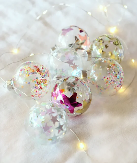11. Oversized Glass Ornaments Filled with Metallic Confetti