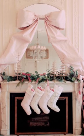 16. Pink Christmas Fireplace with Traditional Elements