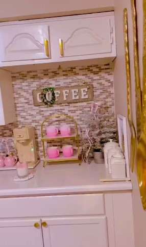 This pastel pink Christmas kitchen setup brings a soft, feminine touch to holiday decorating. The cozy coffee nook is styled with matching pink mugs, a tiny flocked Christmas tree, and hints of gold for a bit of festive sparkle. The combination of creamy white cabinets, warm beige tones, and delicate blush accents creates a calm, elegant atmosphere that still feels merry and bright. It’s a lovely way to infuse holiday cheer into your everyday space without overwhelming it. Perfect for coffee lovers and pink décor enthusiasts, this setup proves that Christmas charm can be subtle, stylish, and perfectly sweet.