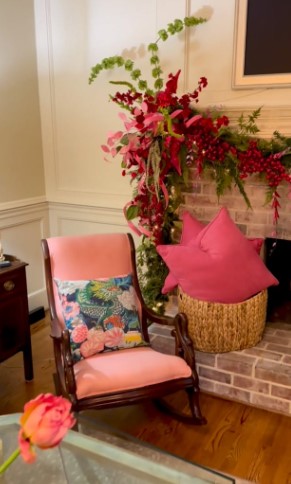 Blending pink accents with classic Christmas elements creates a fireplace display that feels both fresh and familiar. Think traditional evergreen garland dressed up with pink ribbon, ornaments, and maybe some pink-tinted florals tucked in.