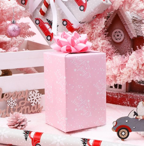Pink wrapping paper featuring white snowflakes combines winter imagery with your color theme perfectly. The pattern adds visual interest while staying cohesive with your overall pink Christmas aesthetic. Coordinate with matching or complementary ribbon, and consider adding small tags in similar colors. The snowflake motif feels seasonally appropriate without being overly traditional or expected. When these packages sit under your tree alongside other pink-wrapped gifts, they contribute to the unified look you’ve created throughout your home. The wrapping becomes part of your decor scheme, making your gift display as thoughtful as the presents inside.