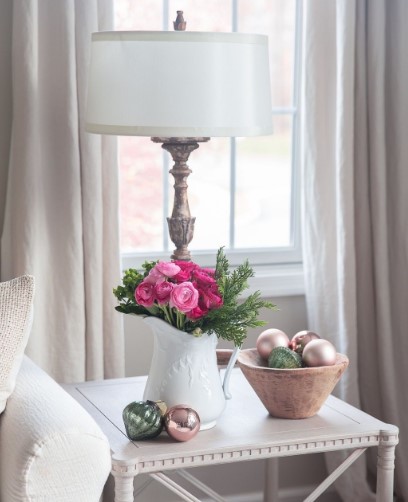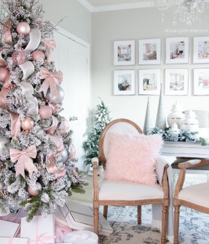 2. Pretty Pink Christmas Decor with Romantic French Country Style
