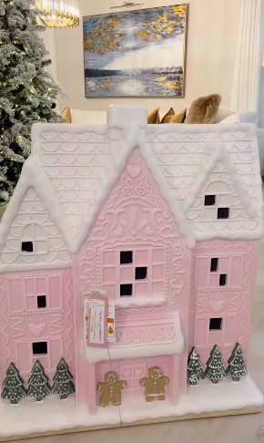 10. Pink Gingerbread House Display