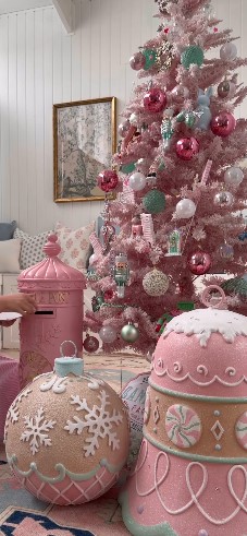 French country meets holiday cheer with this elegant pink Christmas approach. Think distressed white furniture paired with soft rose accents, vintage-inspired ornaments, and delicate ribbon details. The aesthetic combines rustic charm with refined elegance, featuring weathered finishes and antique touches alongside your pink decorations.