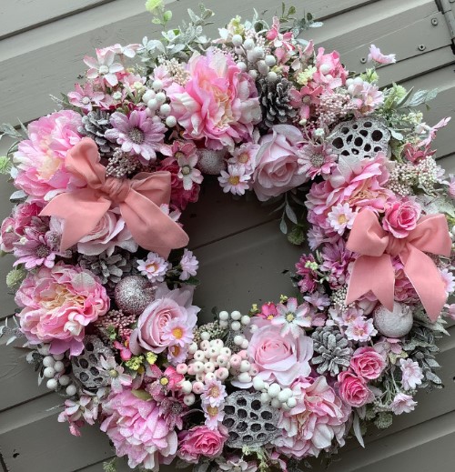 6. Pretty in Pink Christmas Wreath