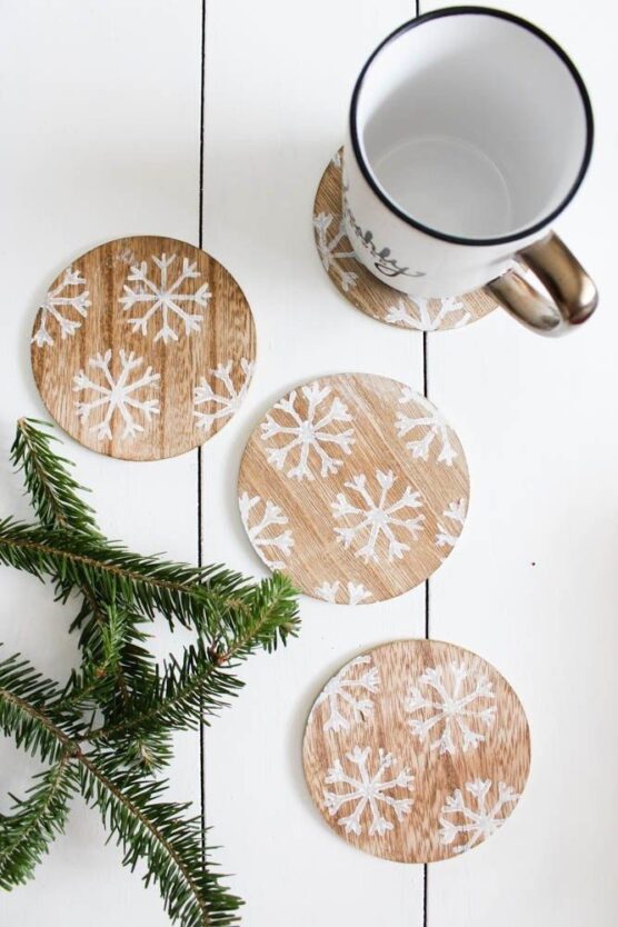 To style them for the holidays, dust a little artificial snow over the edges, then tuck in a few tiny pinecones and sprigs of evergreen-just use a dab of hot glue if you want them to stay put. Set a steaming mug of cider on top, you’ll see the wood catch the firelight and it’s just pure winter magic.