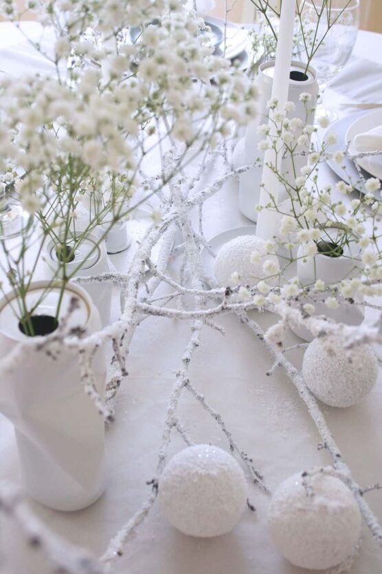 Dust a bit of fake snow on the branches for that just-fell-from-the-sky look. Nestle a few tiny cardinal figurines among the twigs-red pops against the white, making the whole thing look cheery and festive.