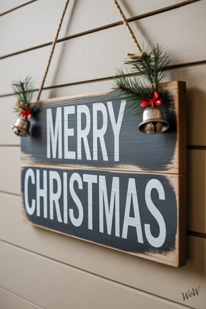Rough-hewn barn wood brings a cozy, lived-in vibe, especially when you hand-paint “Merry Christmas” in slightly wobbly white letters-the imperfections make it feel personal, not mass-produced. To get that timeworn look, sand the edges until they’re a bit rough and uneven, letting the wood’s natural grain pop through.