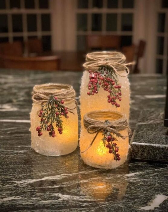 Arrange the jars on a chunky wood shelf with pinecones and a couple of little wooden reindeers, it’s a super simple yet magical scene. The best part: these candle holders double as fragrant centerpieces that’ll make your whole room feel extra inviting.
