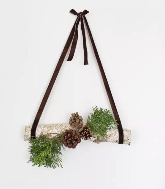 String it up with jute rope for that homespun, cabin-wall feel; it’s easy to hang and looks great layered over neutral shiplap. Adding a few sprigs of pine and some scuffed-up sleigh bells to the corners gives those wintery, old-fashioned touches.
